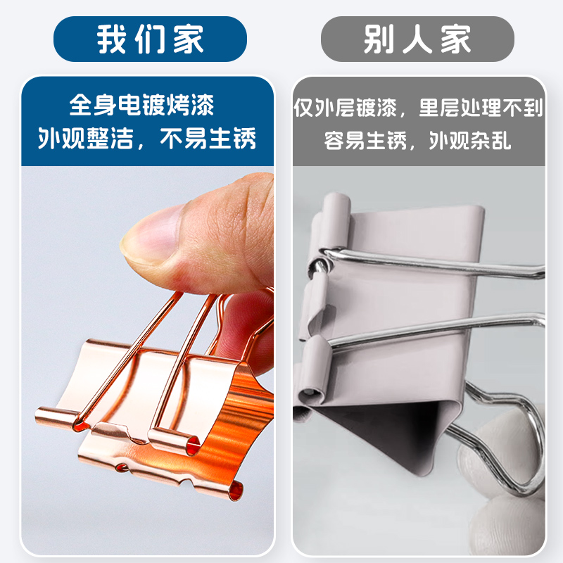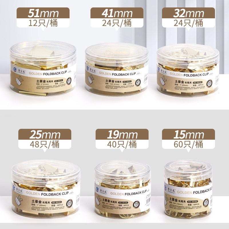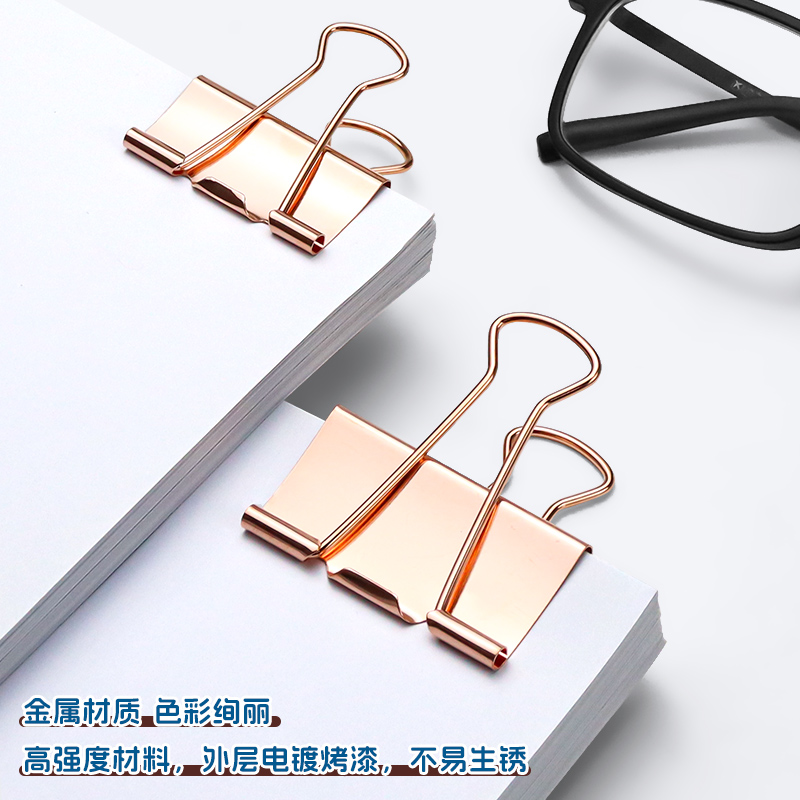 长尾夹燕尾夹金属夹子银色办公文件夹子金色小号大号反尾夹电镀玫瑰金金属票据夹文件收纳整理凤尾夹桶装