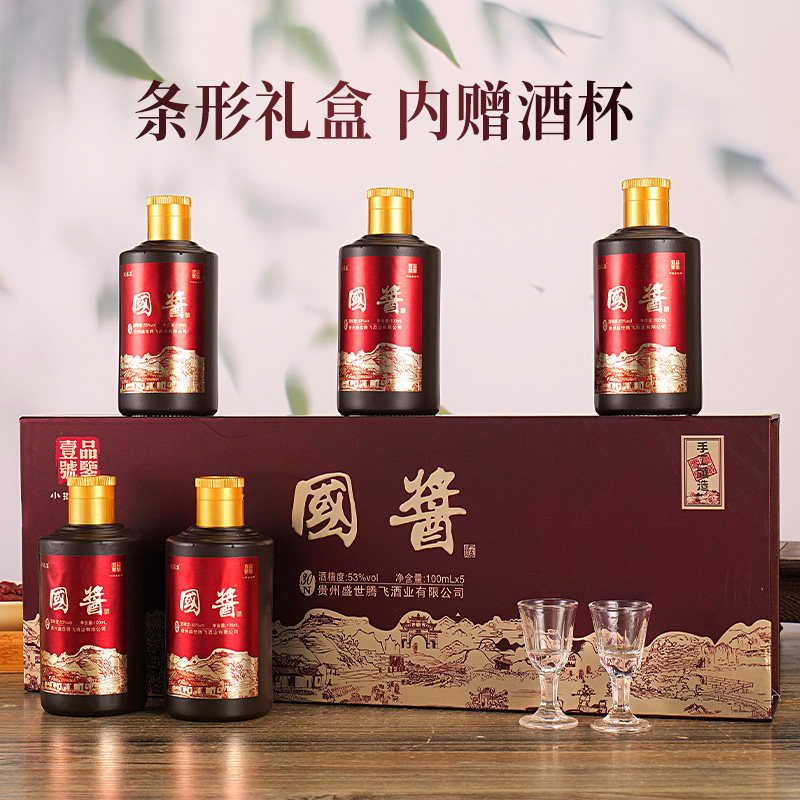 国酱品鉴一号酱香型53度纯粮酒整箱100ml*5瓶送人送礼收藏摆柜