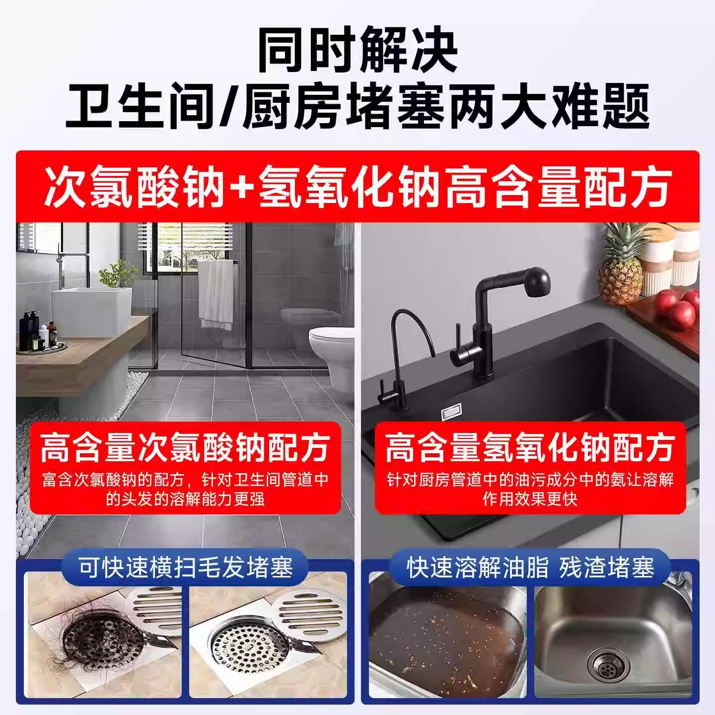 强效管道疏通剂强力溶解厨房厕所卫生间浴室下水道堵塞除臭液神器