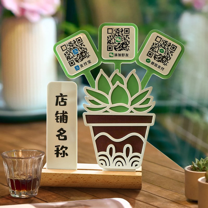现货速发二维码展示牌收款码支付宝收付款收钱牌亚克力摆台立牌店