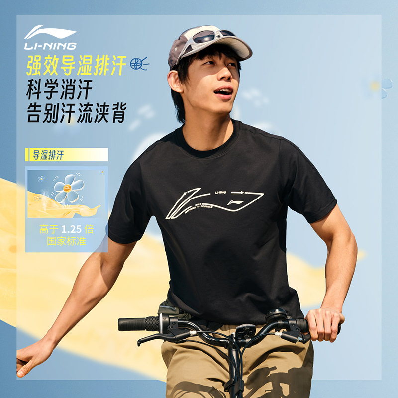 李宁运动服 健身系列 男款排湿速干弹性舒适透气跑步短袖T恤