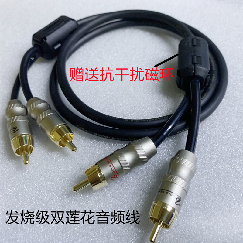 专业双莲花音频线红白2rca头二对二功放音响电视音箱连接线屏蔽线