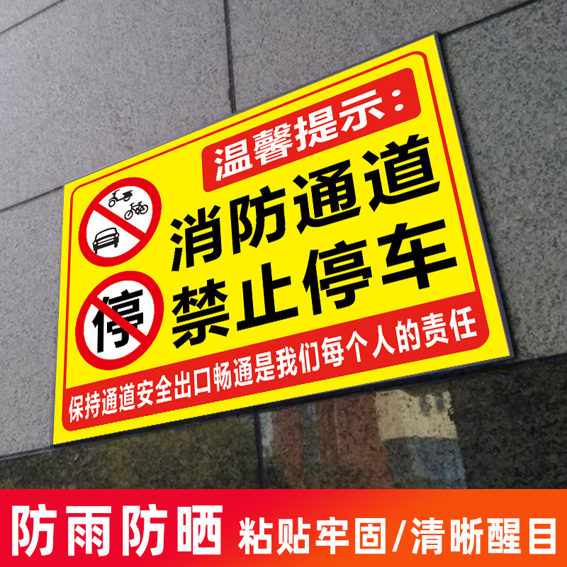 此处消防通道禁止停车警示牌仓库车库门前禁止占用标识牌贴纸私人私家车位请勿停车告示牌请勿占用提示牌墙贴