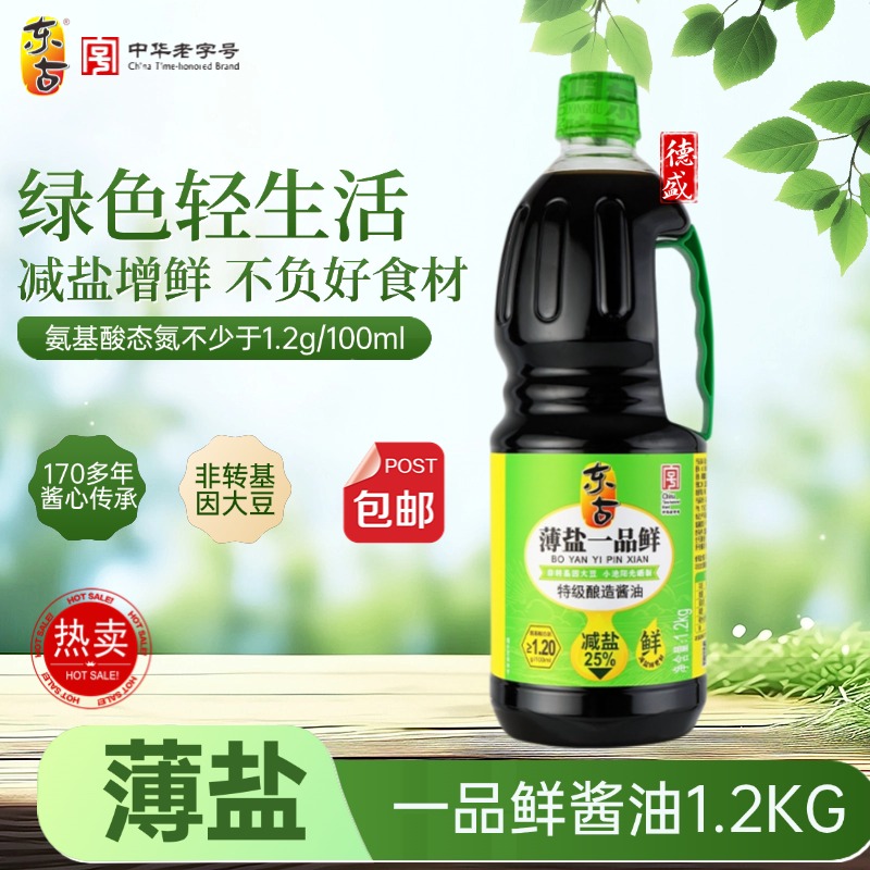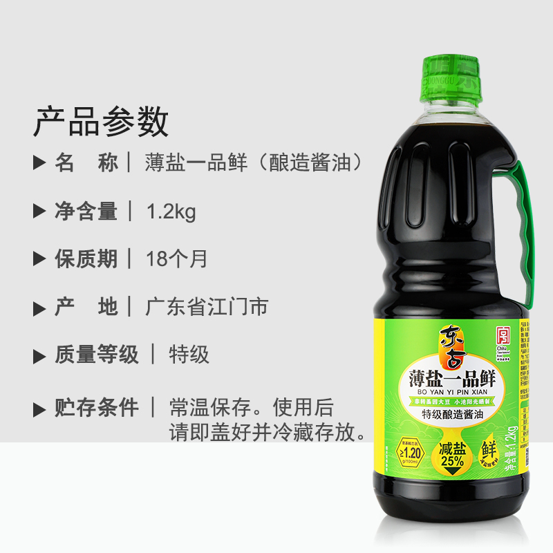 东古薄盐一品鲜加量特级酿造酱油生抽凉拌炒菜淡盐家用中华老字号