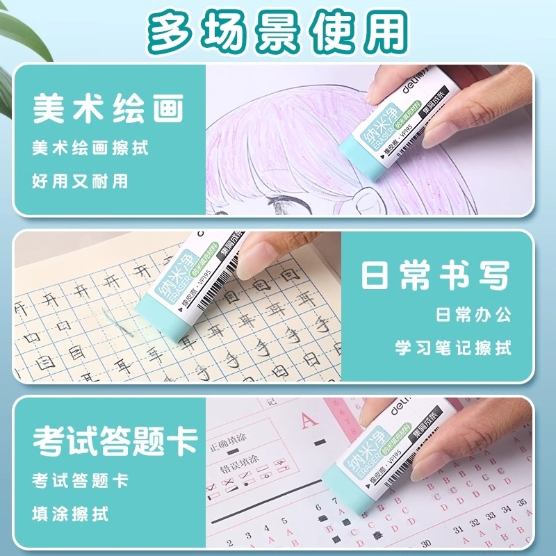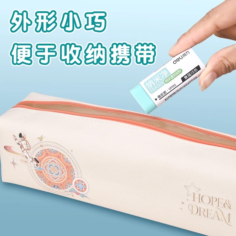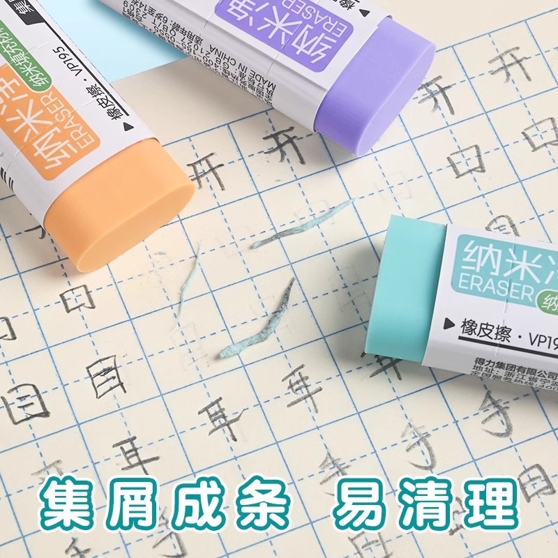 得力橡皮擦集屑材质干净无痕橡皮擦幼儿园纳米成条学生用大号安全无毒无碎屑学生不留痕高颜值擦字成线超干净