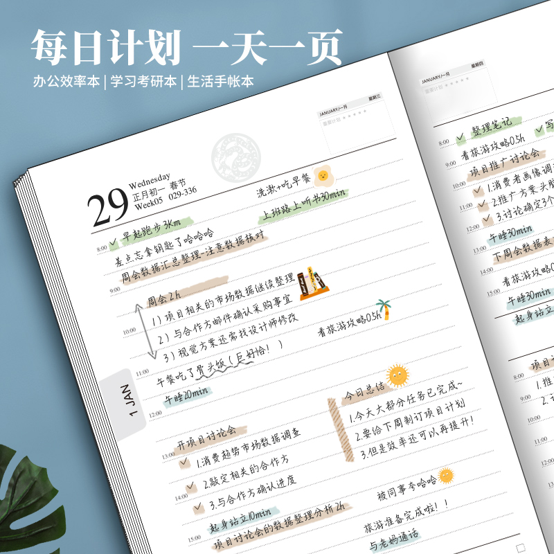 2026年日程本计划本365天每日计划表一天一页工作自律打卡日历记事本效率手册时间管理笔记本子日记本可定制