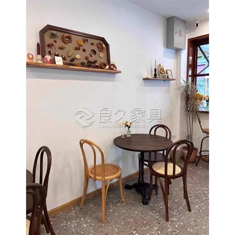 商用咖啡厅桌椅组合套装酒吧清吧酒馆桌子休息区实木编藤椅
