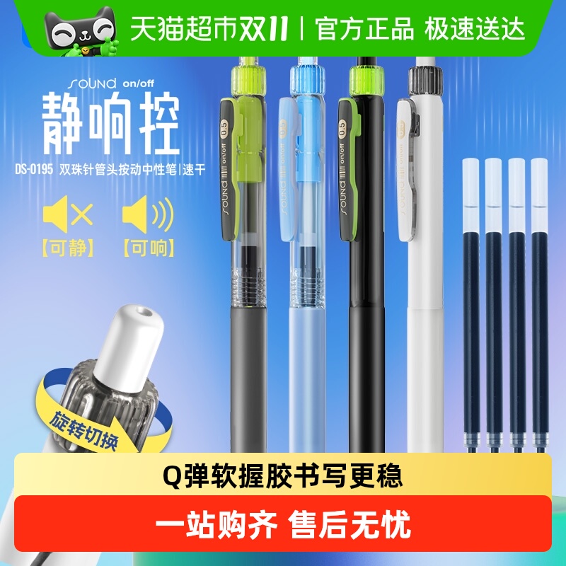 点石制笔静响控中性笔高科技0.5黑红芯速干顺滑双珠大容量书写