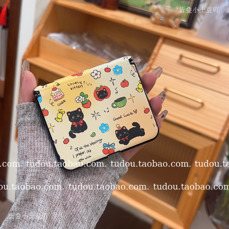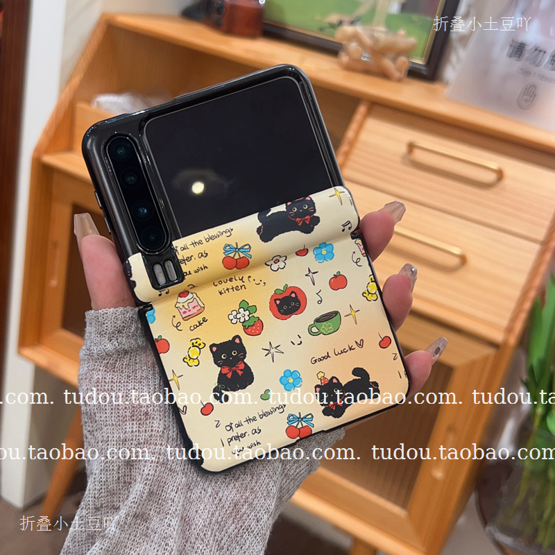 适用于华为purax手机壳典藏版中轴磁吸荣耀magicvflip2樱桃黑猫mixflip2折叠屏保护套zflip6手提挂绳全包防摔