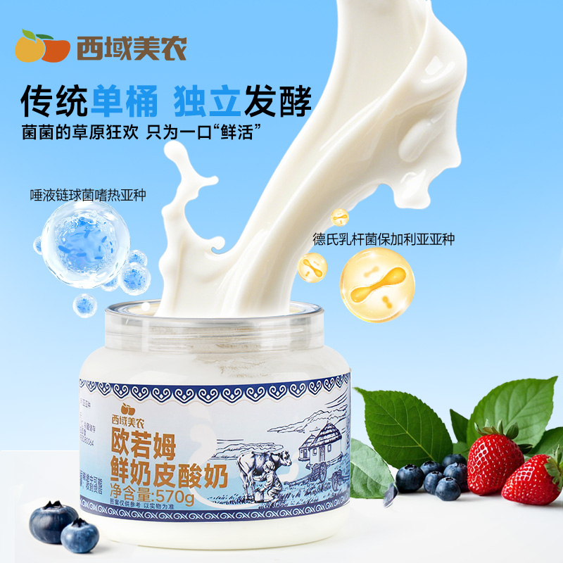 西域美农欧若姆鲜奶皮子酸奶1kg*2瓶内蒙古特产噎冷萃大桶装草原