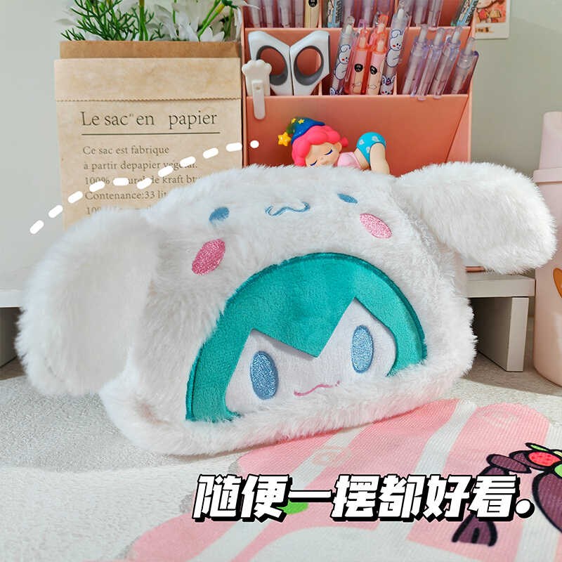 速发新款MIKU毛绒笔袋大容量文具收纳袋学生创意可爱文具盒痛包