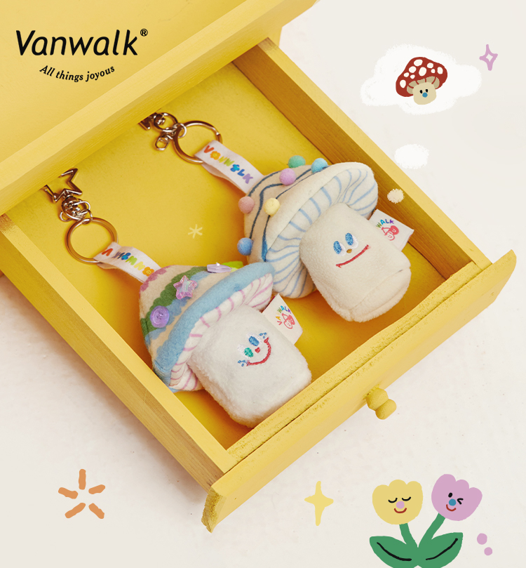 VANWALK小花园 自制可爱蘑菇包包装饰挂件毛绒公仔背包挂饰收纳袋