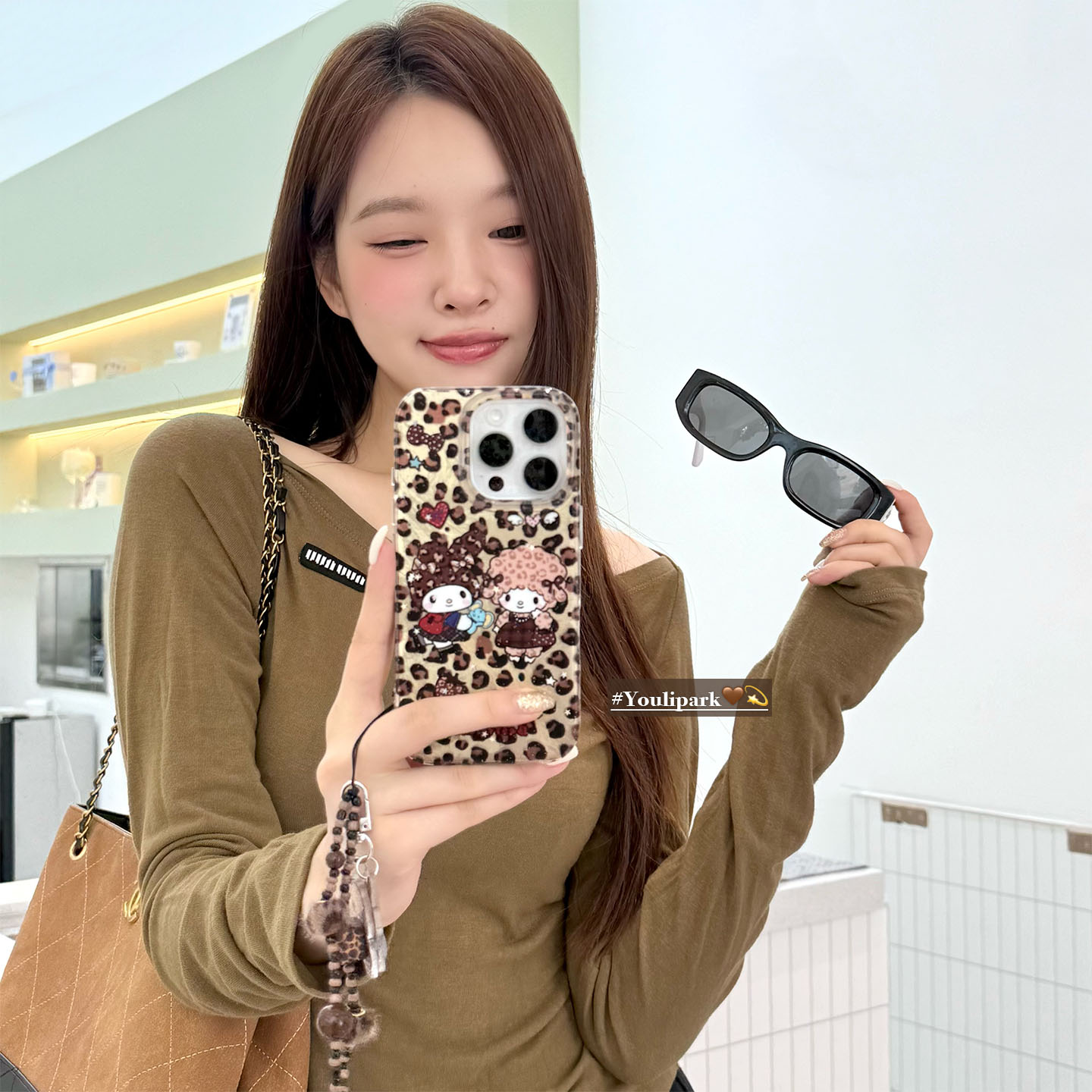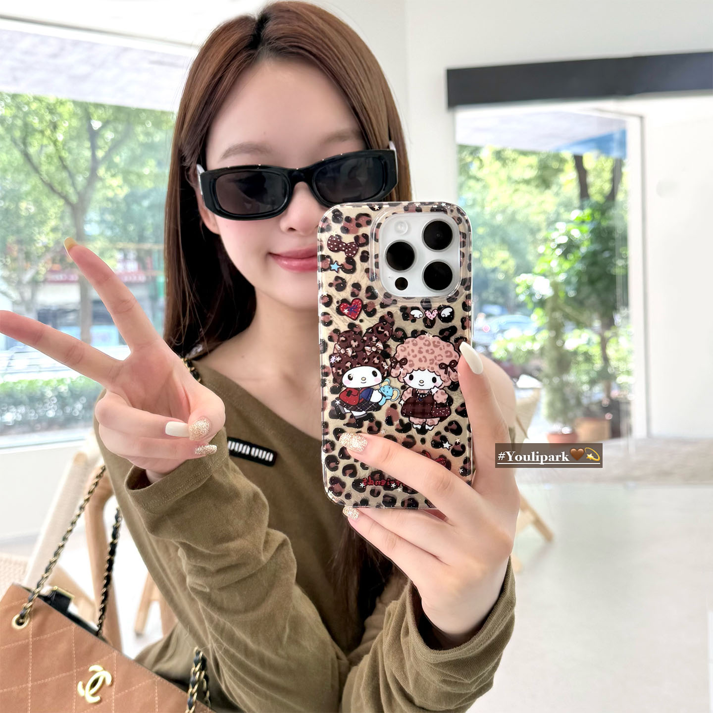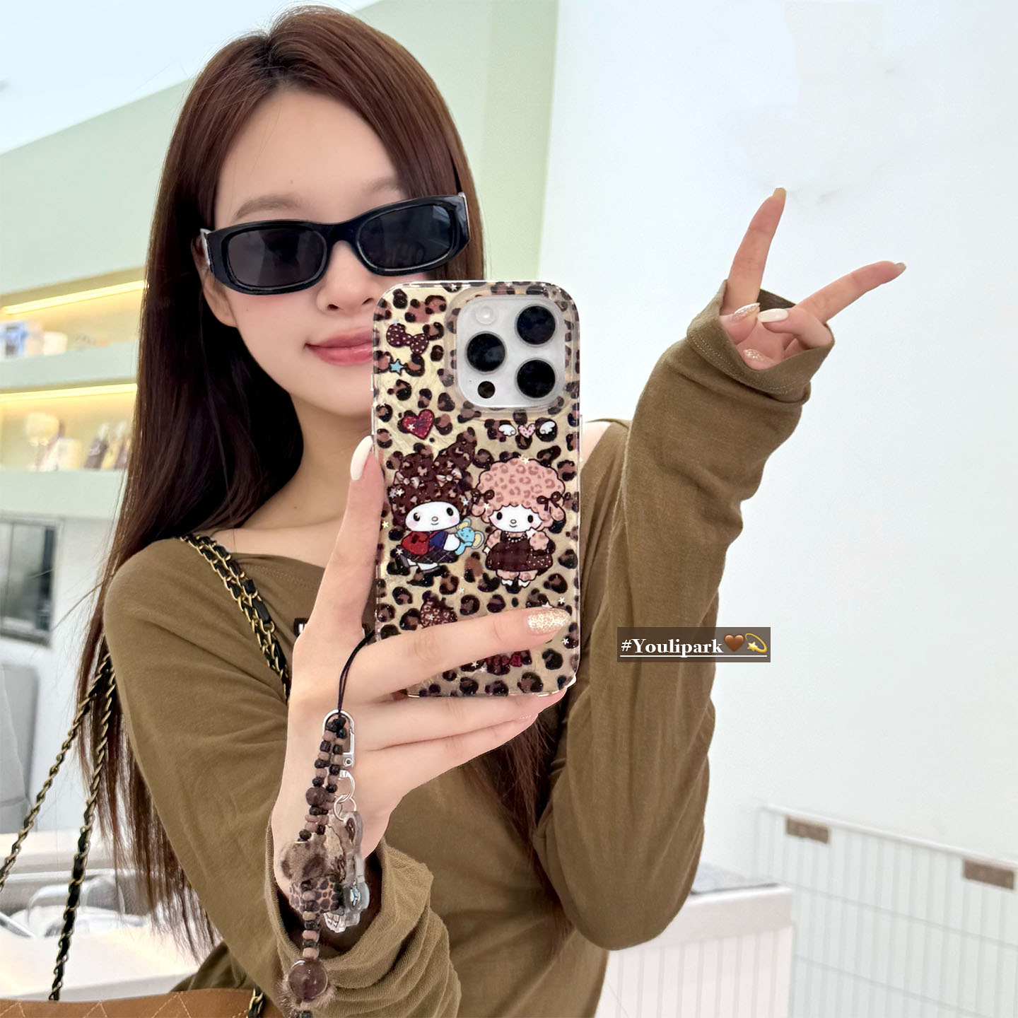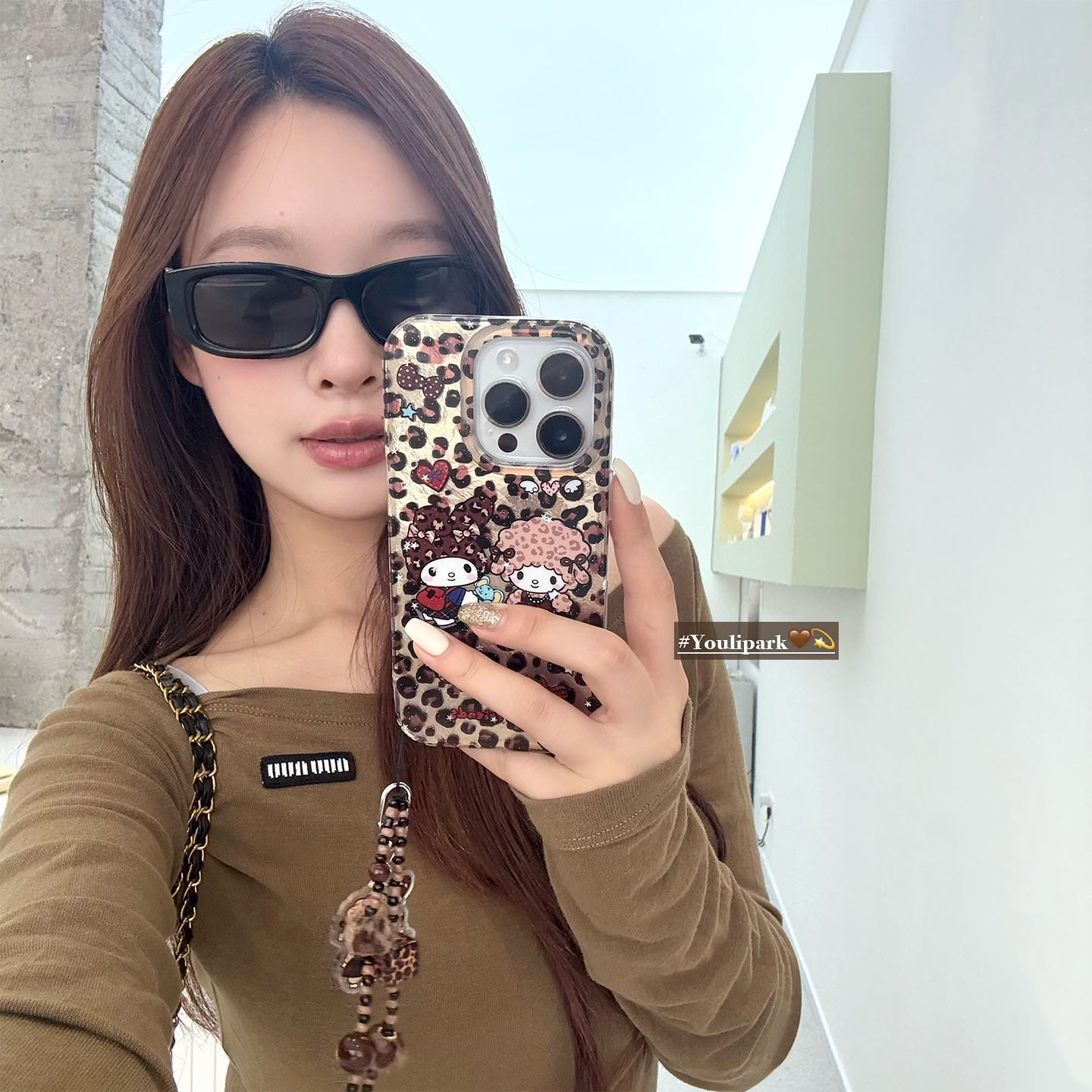 由里公园ins秋冬韩系可爱甜酷时髦豹纹卡通15适用16pro苹果16ProMax手机壳iPhone16全包14少女14Promax保护套