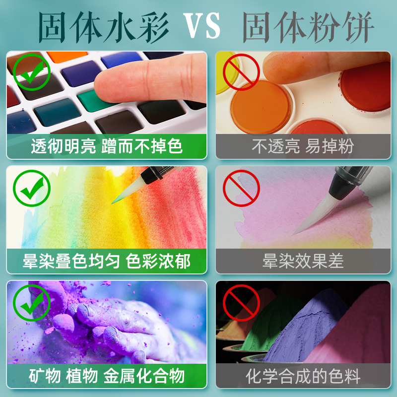 蒙玛特 艺蔻 固体水彩颜料24色36色自来水笔工具水彩透明水粉画套装专业美术便携初学者学生儿童可水洗健康