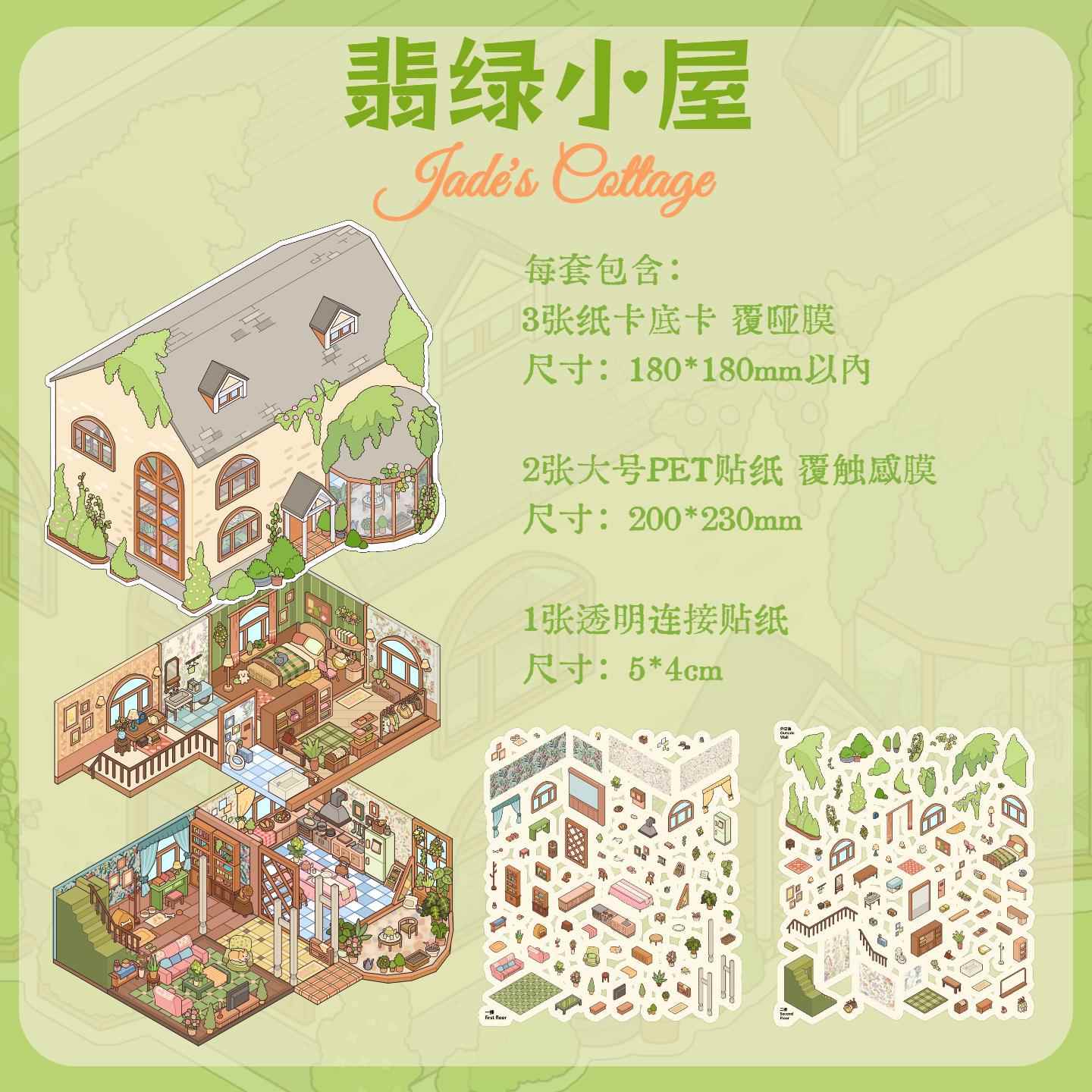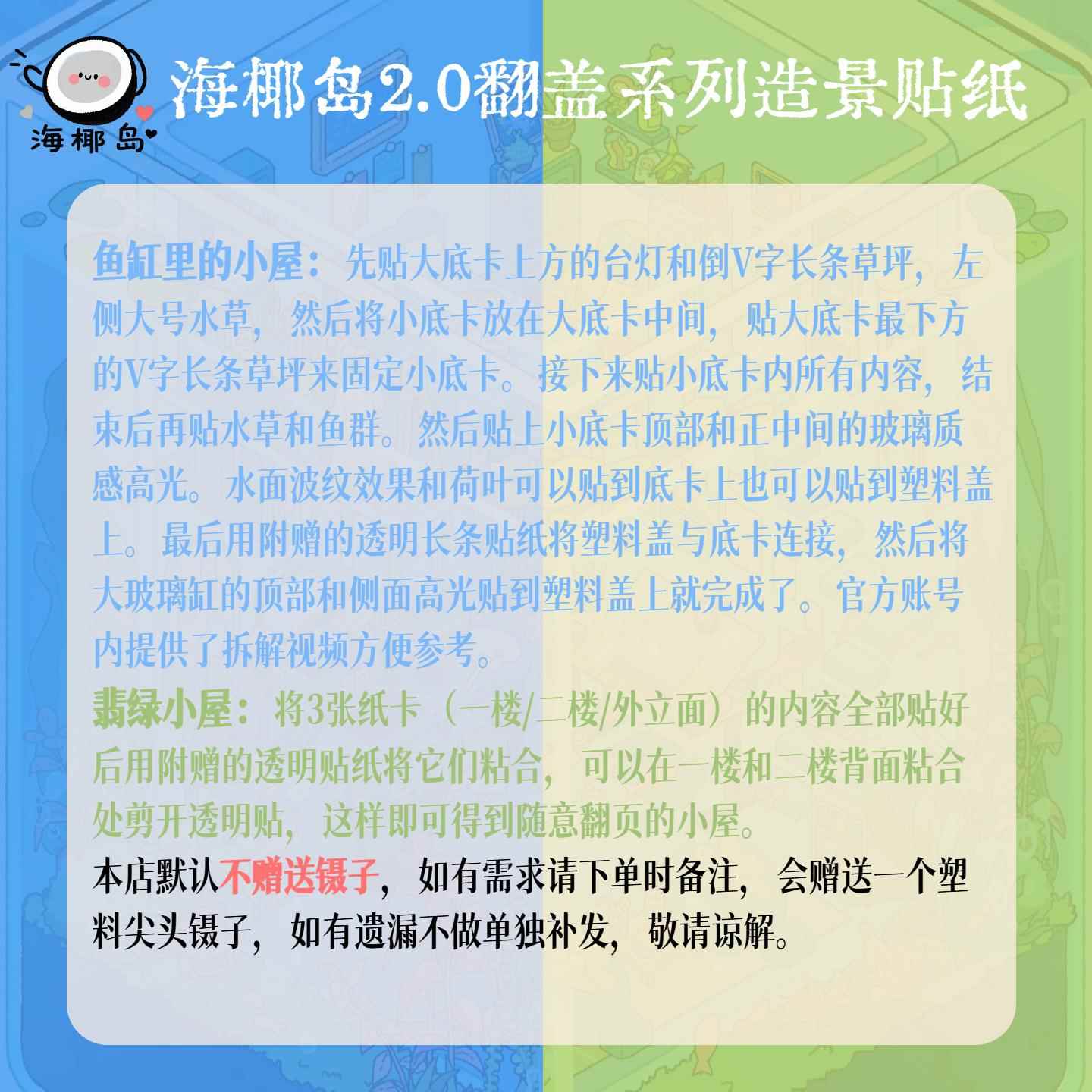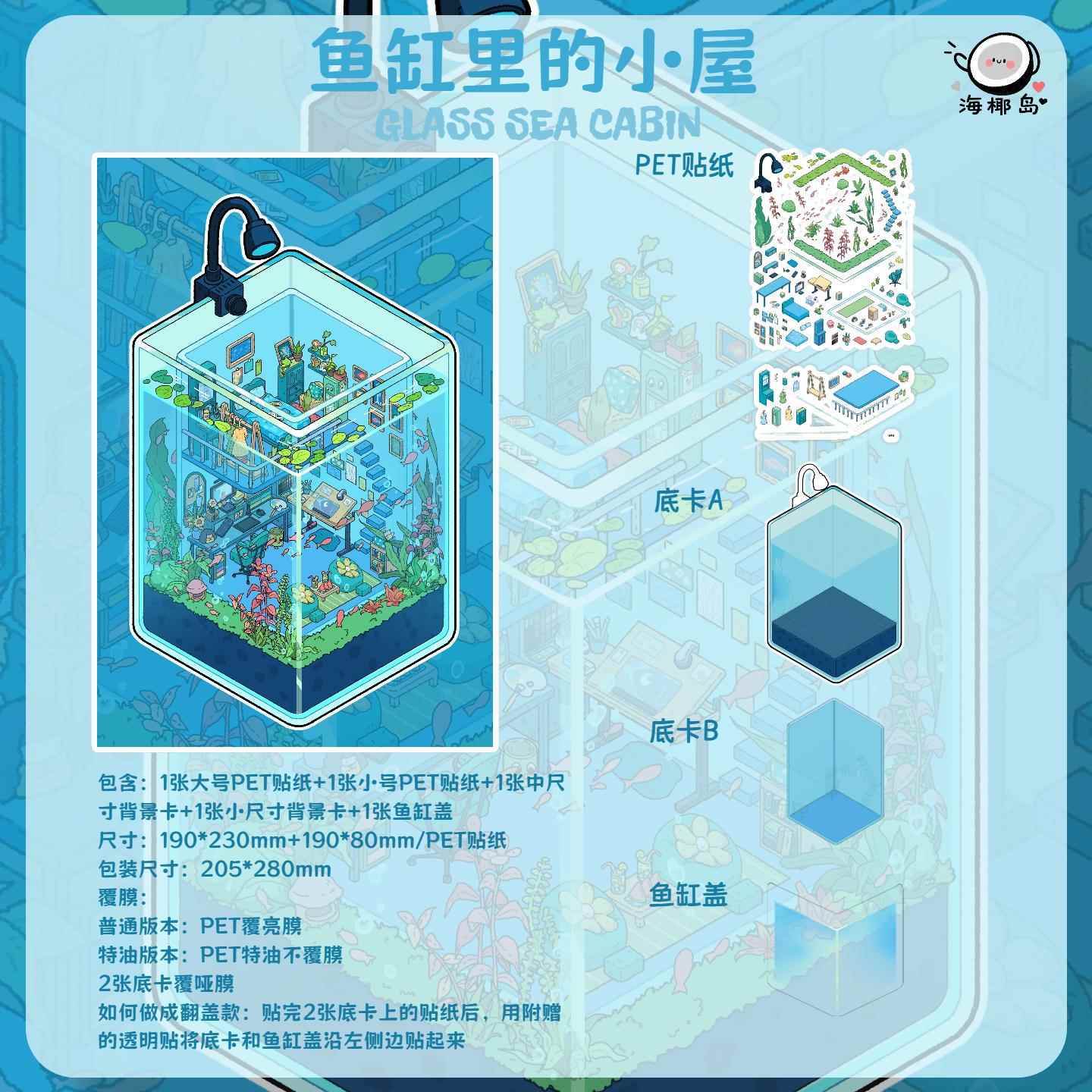 海椰岛原创造景贴纸2.0翻盖鱼缸里的小屋+翡绿小屋2款