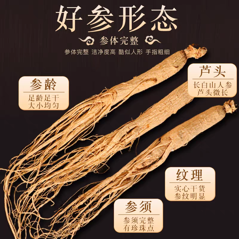 长白山正品人参东北特大野山参白参生晒参干人参山参整枝泡酒煲汤