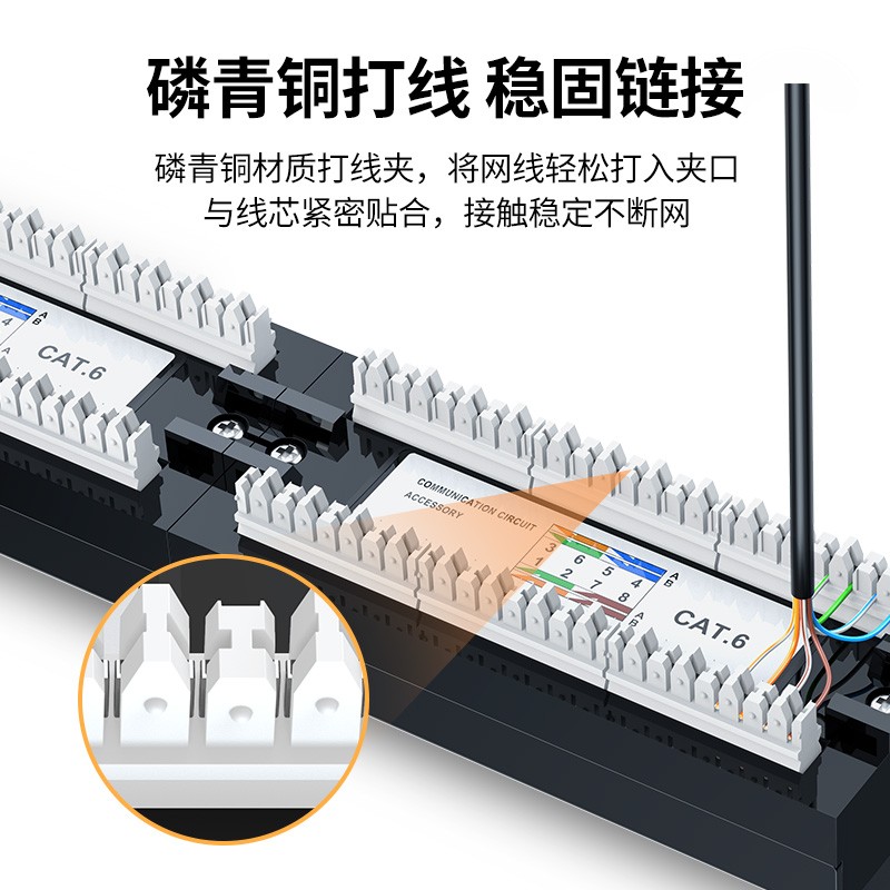绿联网络理线配线架24口48口超五5六6类cat6千兆非屏蔽rj45网线机柜跳线模块服务器机架式1U理线槽架