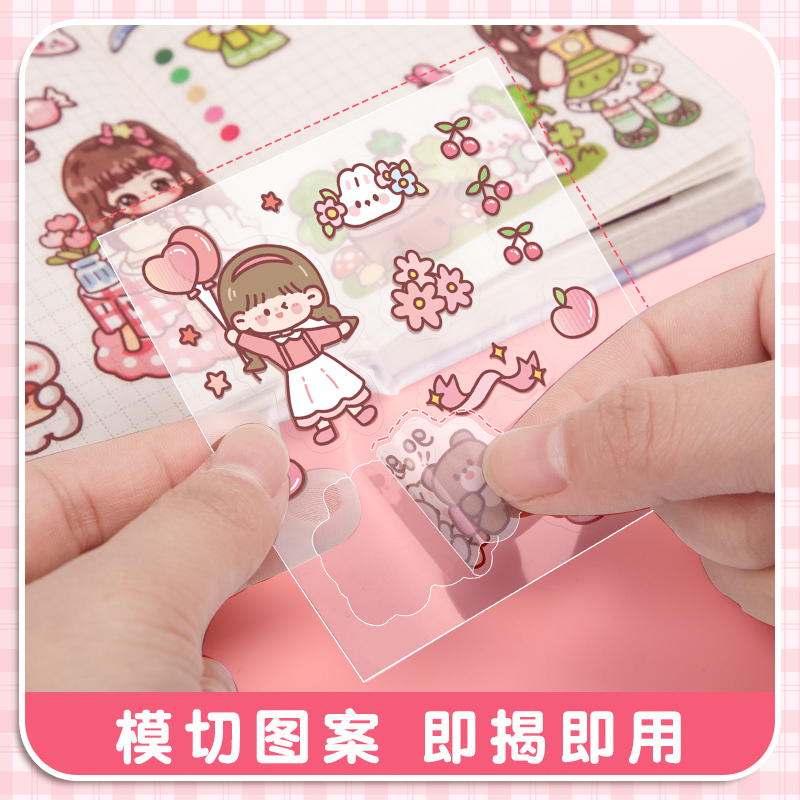 手帐贴纸女孩儿童手账贴画透明贴纸套装100张卡通水杯贴可爱手杖粘贴咕卡和胶带装饰小图案防水PET手帐本贴纸