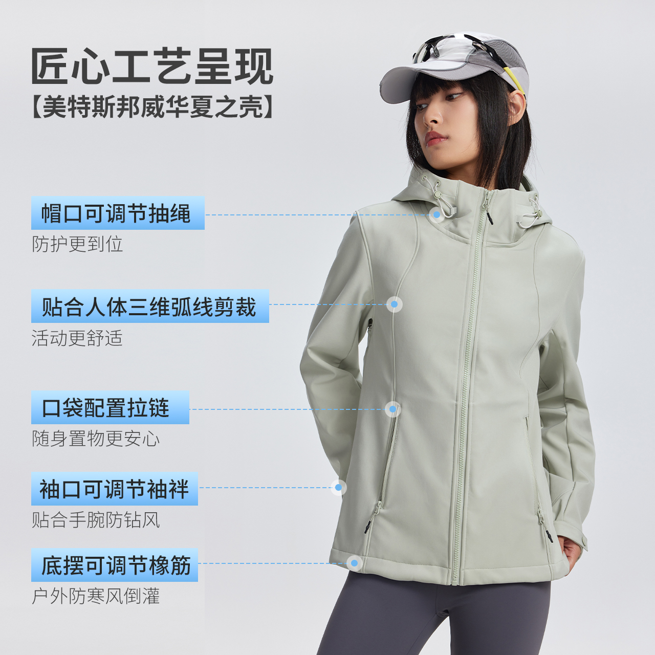 【华夏之壳-风系列】美特斯邦威机能软壳外套女秋冬合体户外上衣