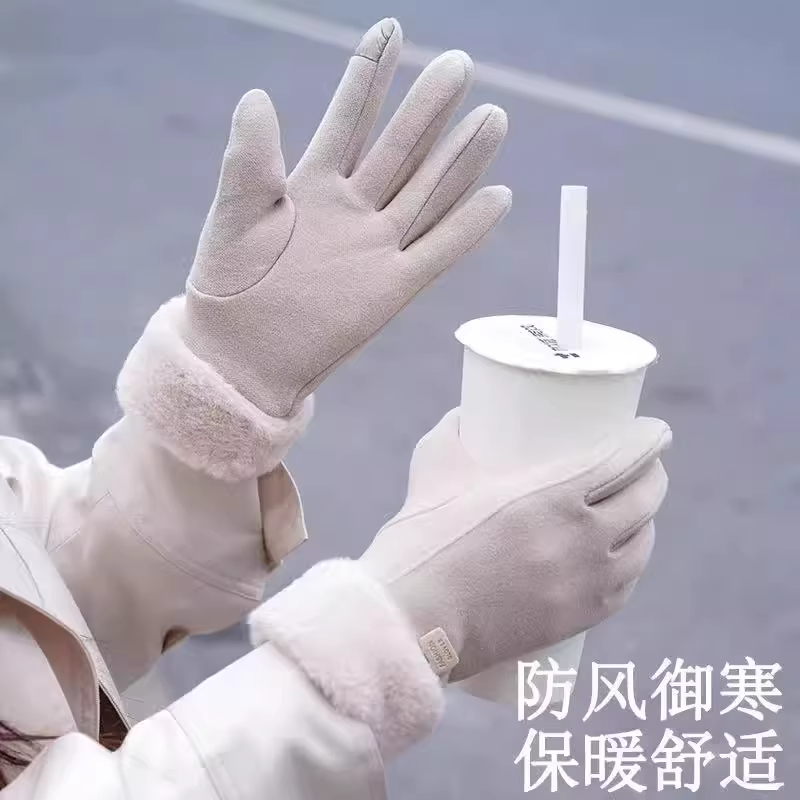 手套女冬季高级感保暖手套冬天加绒加厚可爱麂皮绒女士骑行防寒骑