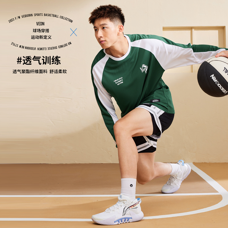 维动长袖引向投篮服T恤男美式篮球训练服运动跑步上衣透气网眼潮V