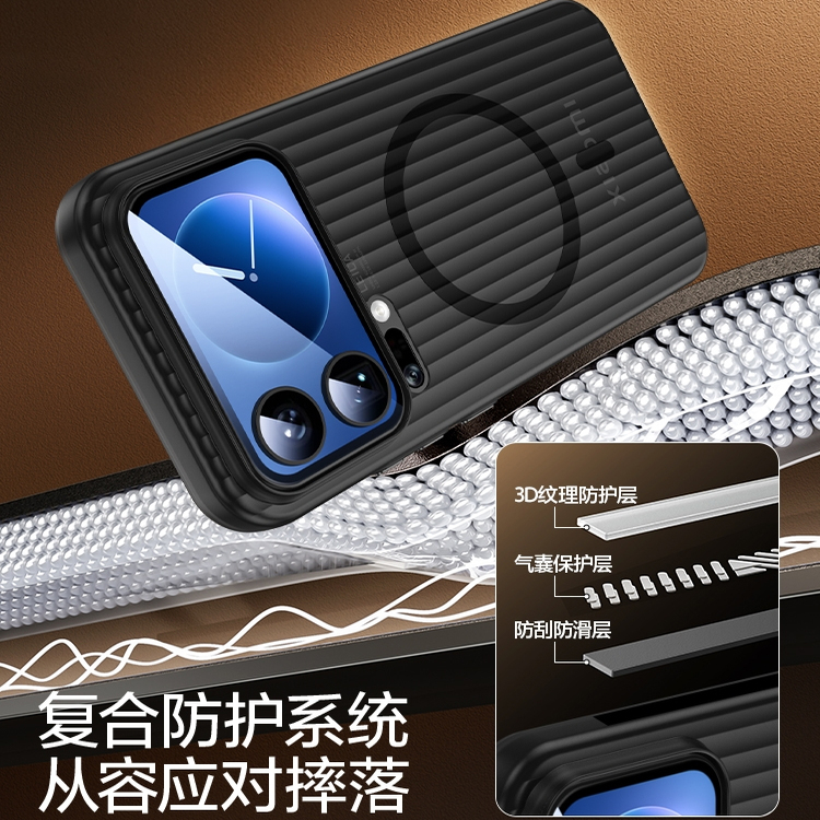 适用于小米17手机壳新款瓦楞光栅磁吸小米17pro超薄磨砂半透明全包防摔外壳17promax的高级男士散热手机套