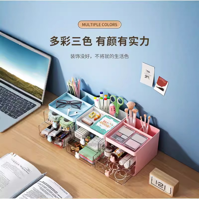 抽屉式大容量笔筒可爱男女孩办公桌摆件轻奢高级感高颜值收纳盒
