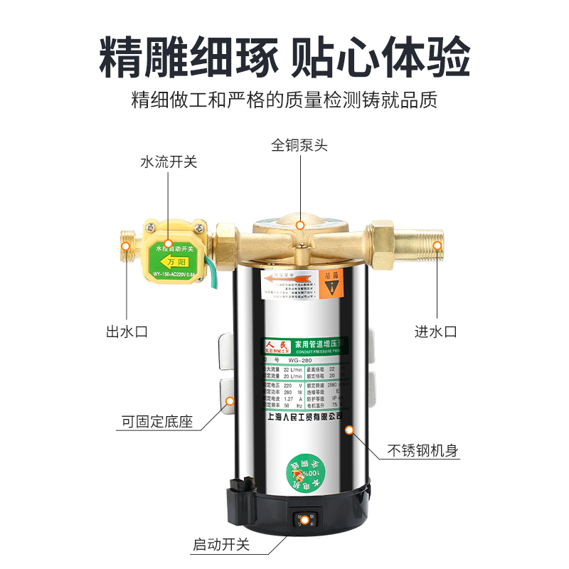 上海人民自来水增压泵小型家用全自动太阳能热水器管道加压水泵