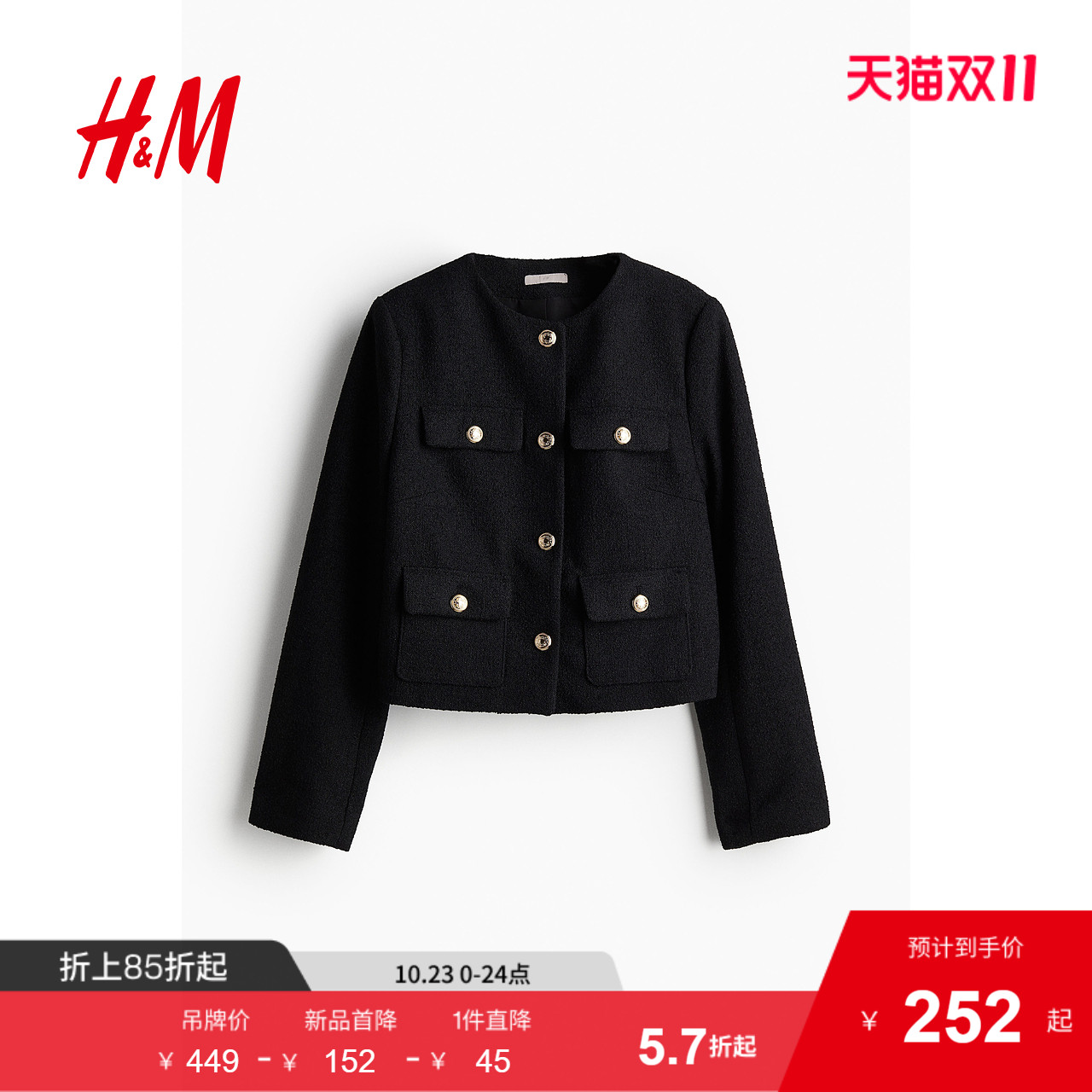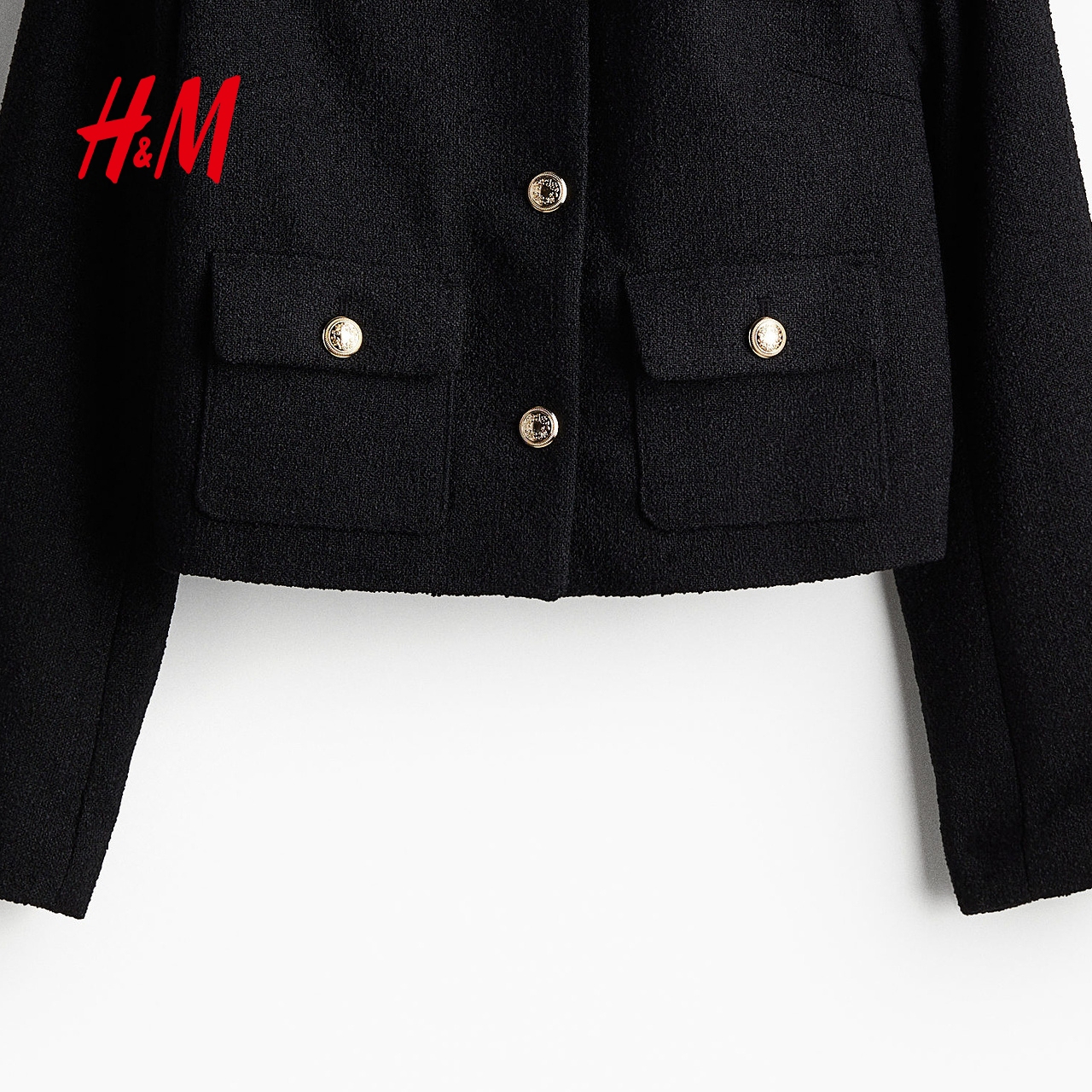 HM女装短外套秋季圆领单排扣长袖千金粗花呢小香风外套1241437