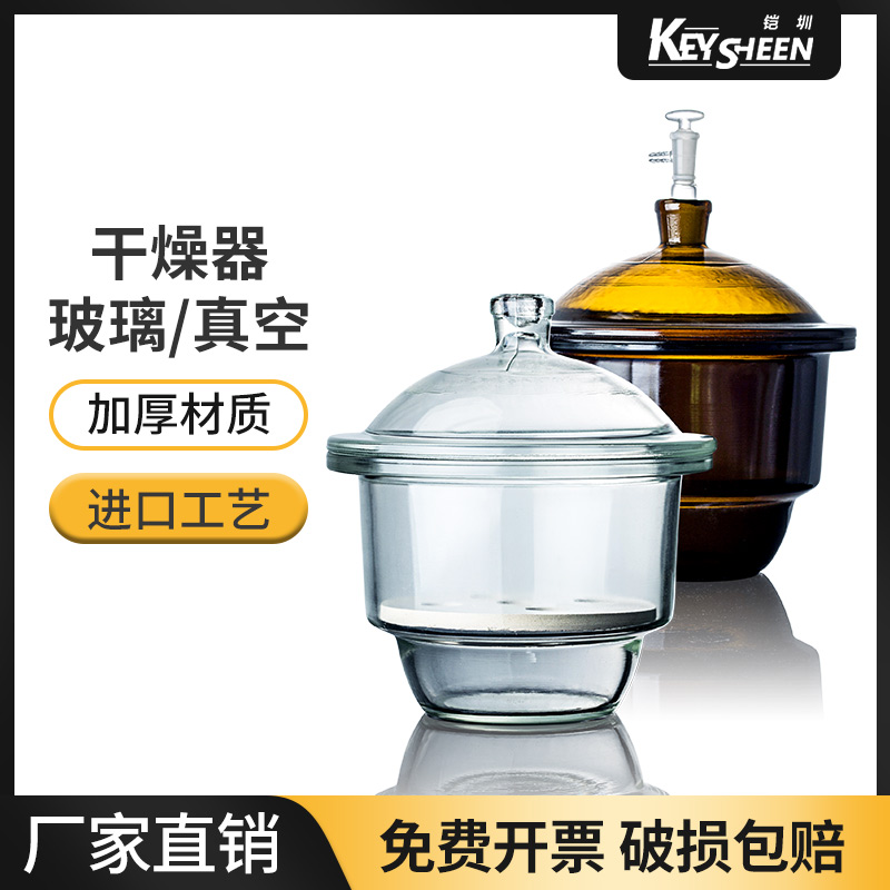 透明真空干燥器 玻璃干燥皿罐实验室干燥罐棕色透明 白色皿器附瓷