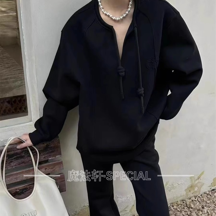 【现货】纯色休闲套装两件套2025新款宽松V领上衣+阔腿裤秋季潮q