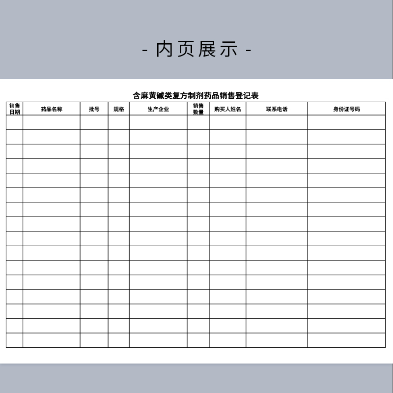 含麻黄碱类复方制剂药品销售登记表GSP日常检查记录飞检抽食药监局抽检商铺药房销售记录本医院药房专用本