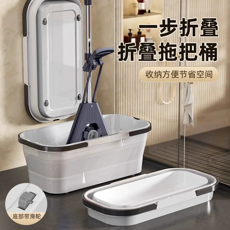 美丽雅净爽胶棉拖把对折挤水家用免手洗+海绵替换头