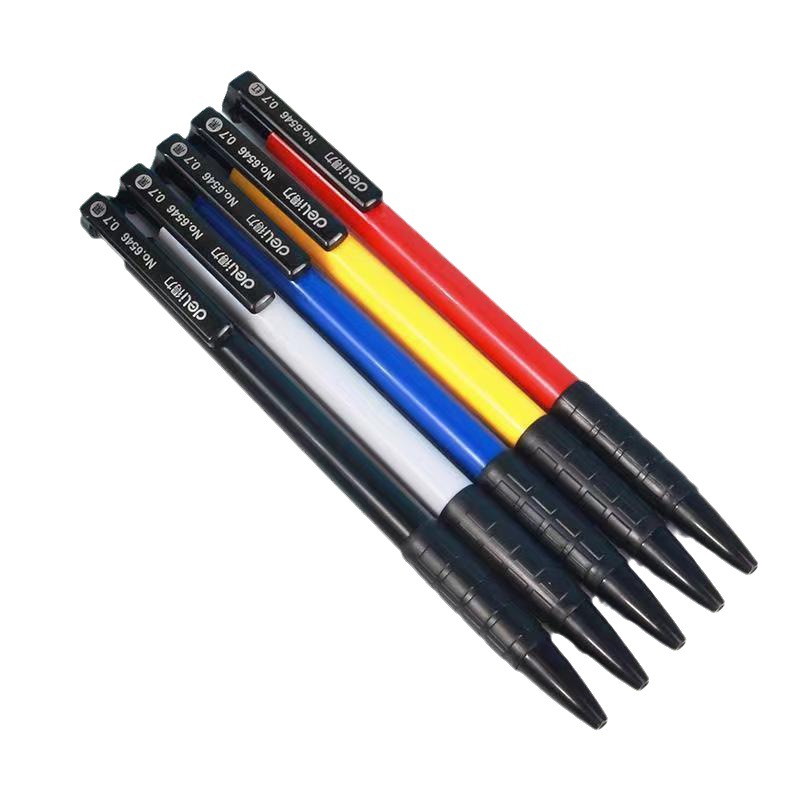 得力圆珠笔0.7mm蓝色按压式油笔黑色红色原子笔学生中油笔高颜值