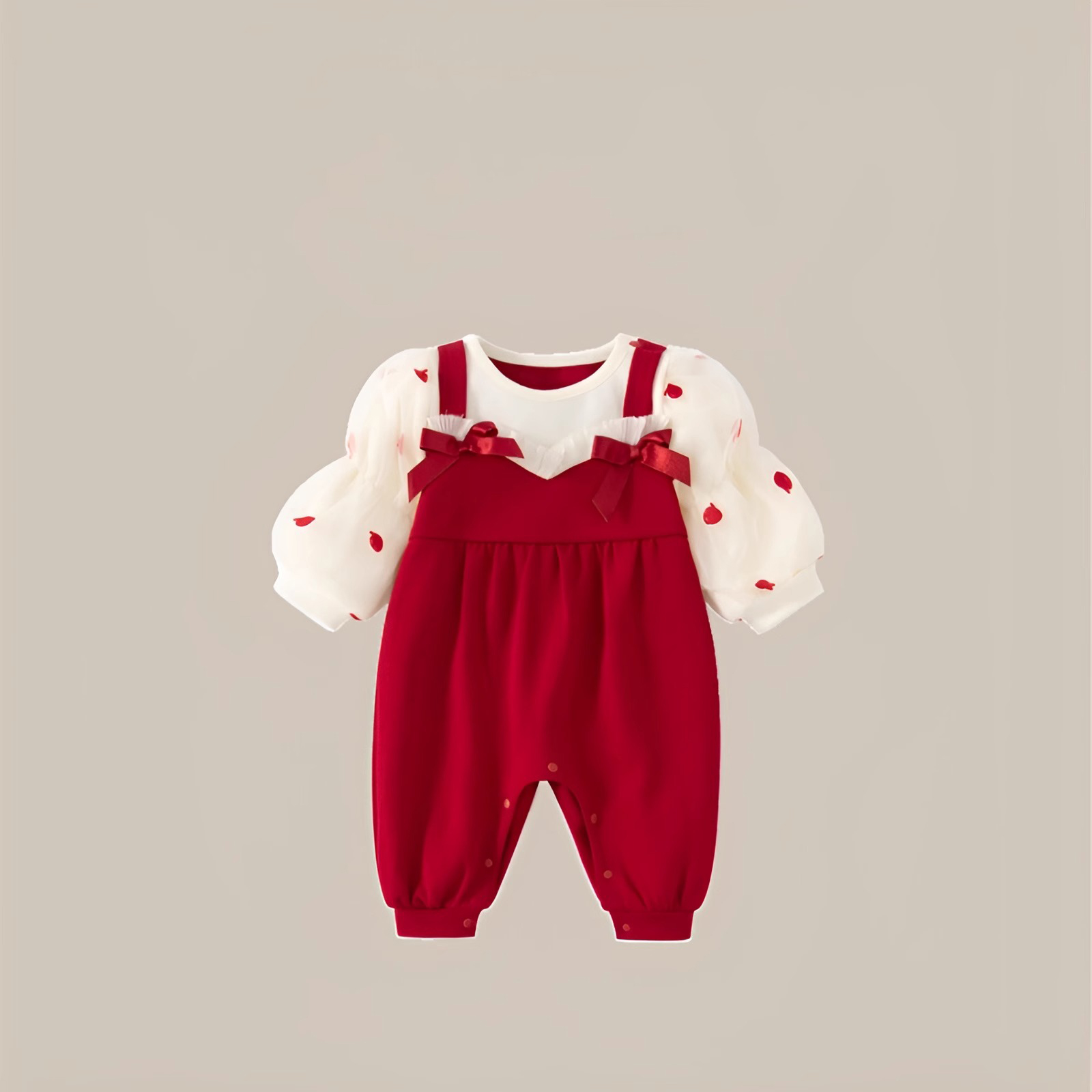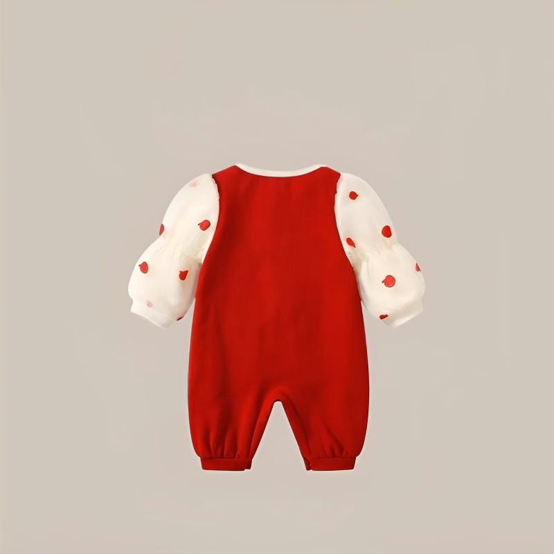 婴儿连体衣2025秋装红色百天周岁满月礼服女宝宝秋冬爬爬服女喜庆