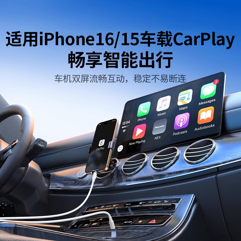 倍思车载carplay弹簧伸缩数据线适用苹果17华为小米充电线iPhone16pro手机15汽车摩托车usb转typec快充Hicar