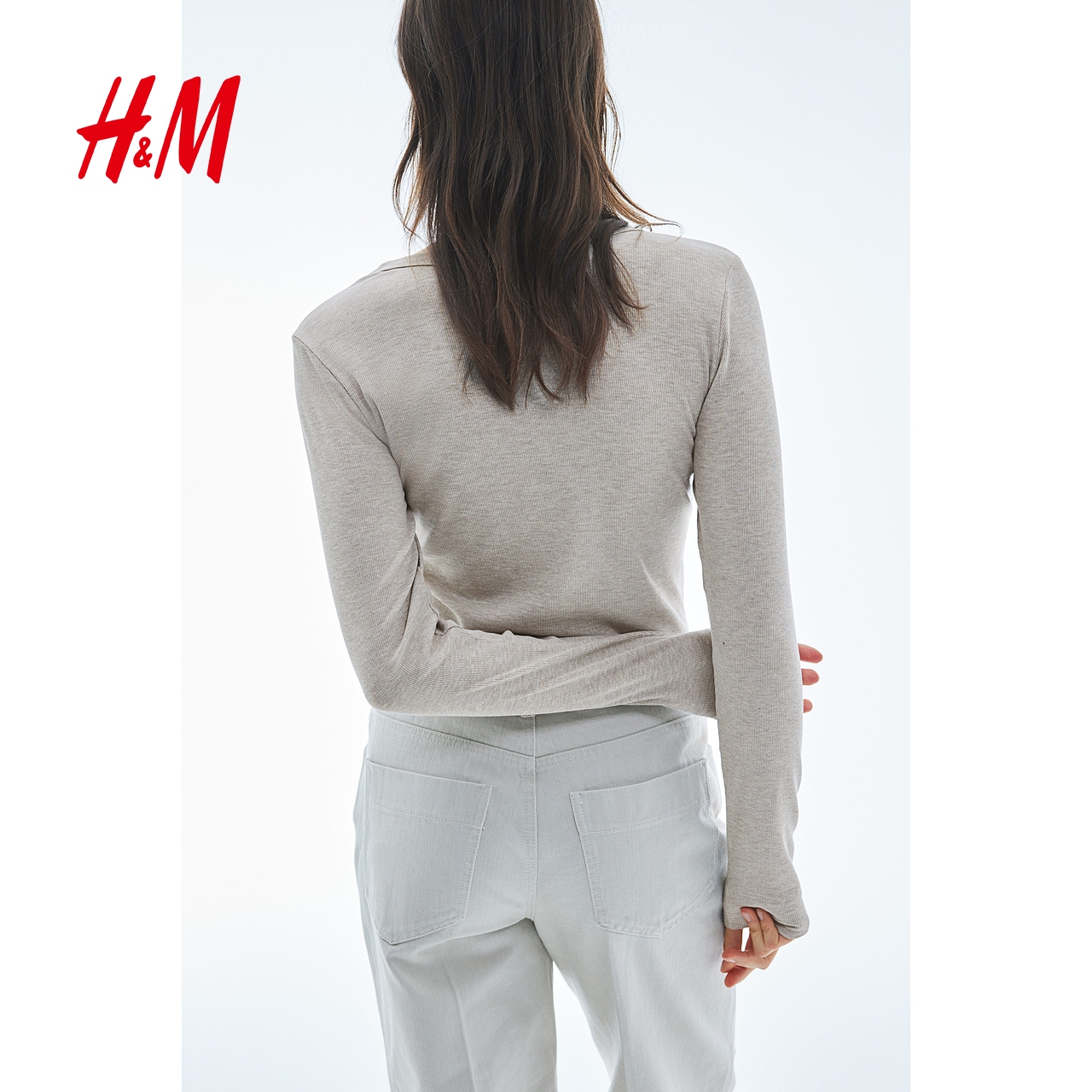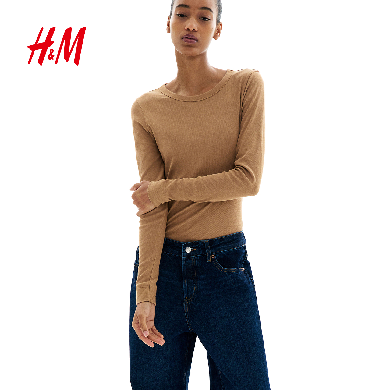 HM女装T恤秋季莫代尔混纺修身显瘦打底衫圆领长袖内搭上衣0999727