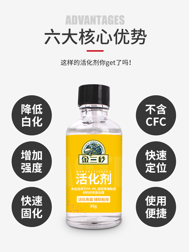 金三秒活化剂橡胶底剂PP处理PE促进剂TPU底涂剂TPR硅胶表面底涂剂