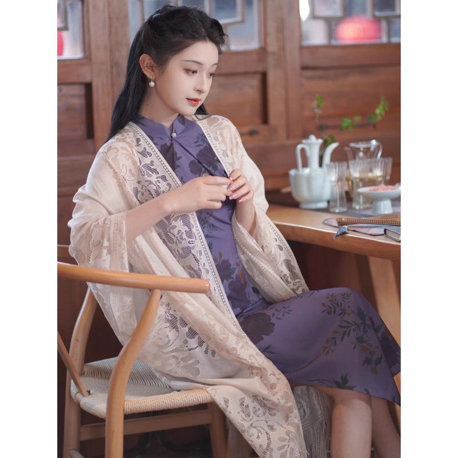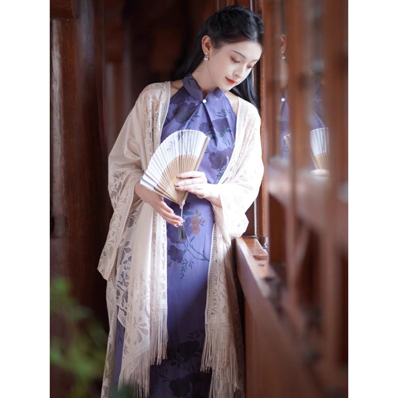 花开栀夏超仙流苏蕾丝披肩配旗袍外搭新款薄款开衫防晒衫12白色