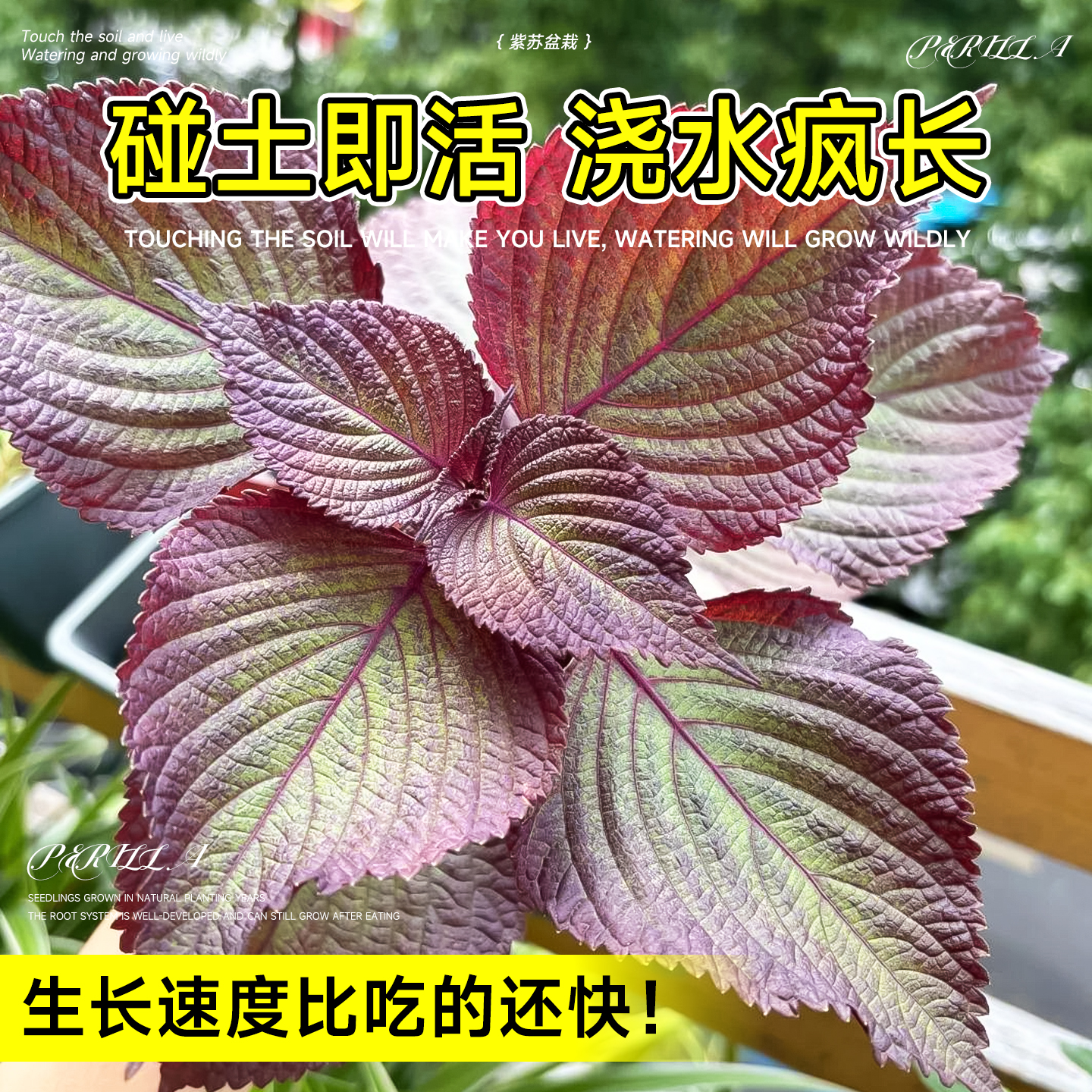 紫苏盆栽可食用室内阳台庭院大盆苏子叶厨房烹饪香料绿色好养植物