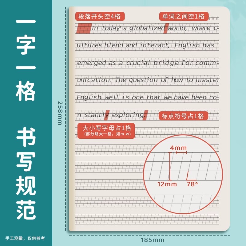 英语定位本定格书写本16k英文规范训练本子小学生初中生高中生练字专用书写自作文纸听写本学校单词线装