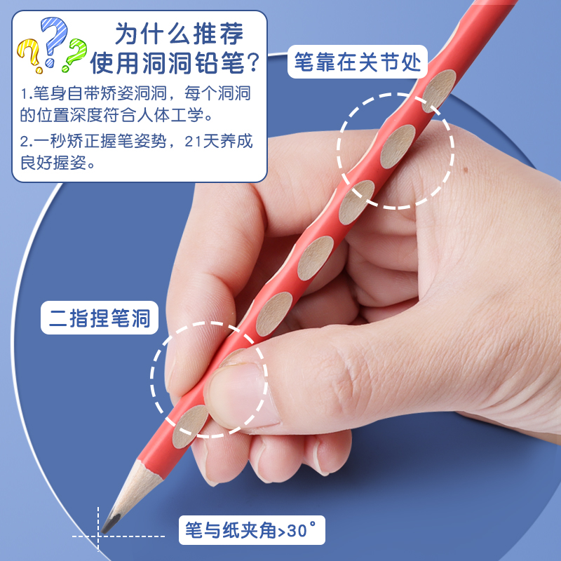 晨光洞洞铅笔小学生无毒幼儿园一年级专用2比儿童铅笔正姿洞洞笔铅笔2b/hb矫正握姿三角杆彩杆洞洞铅初学者用