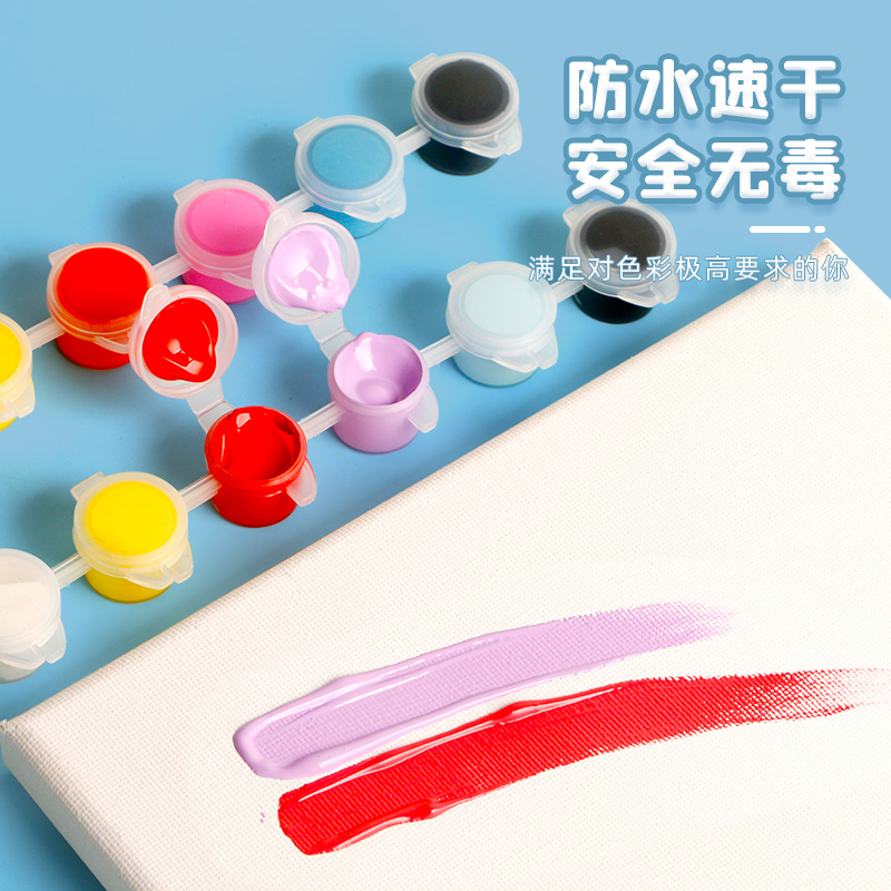 3毫升6连体丙烯颜料套装儿童数字油画涂色颜料条石膏娃娃手绘diy墙绘风筝填色油彩手办上色盒装美术绘画专用