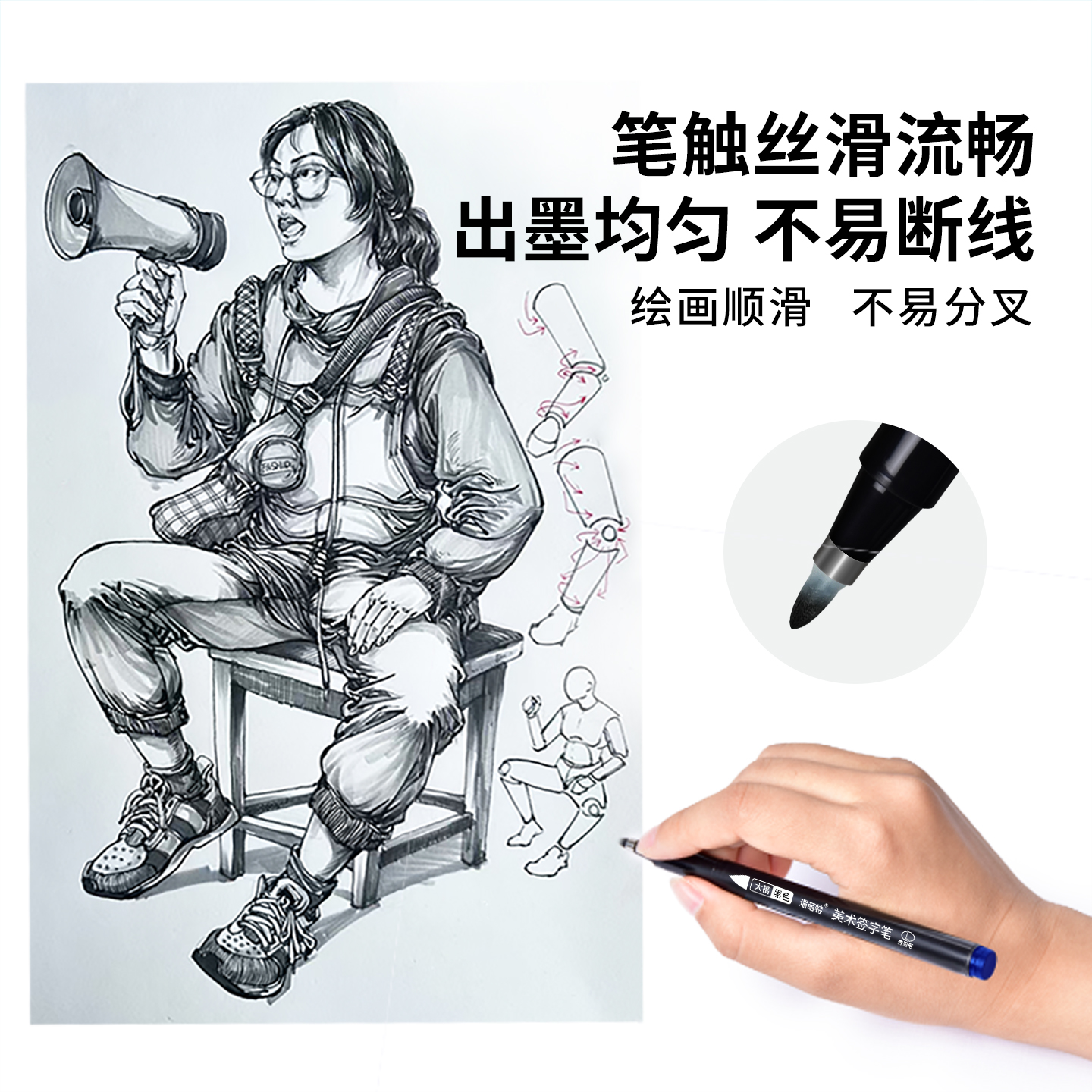 瑞萌特美术秀丽笔签字笔 速写专用黑灰色勾线笔大中小楷书法笔签名笔小学生练字笔瑞蒙特速写笔官方旗舰店