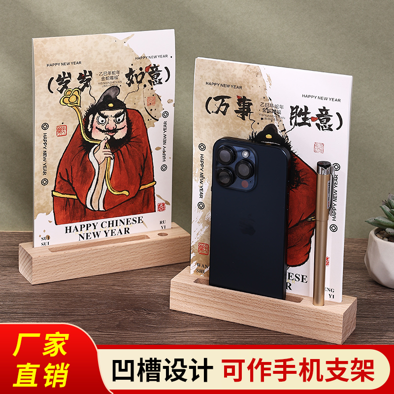 原创台历2026年新款高颜值高档家用原创画师手绘钟馗实木底座摆件万事胜意个性创意新年礼品来图定制工作打卡