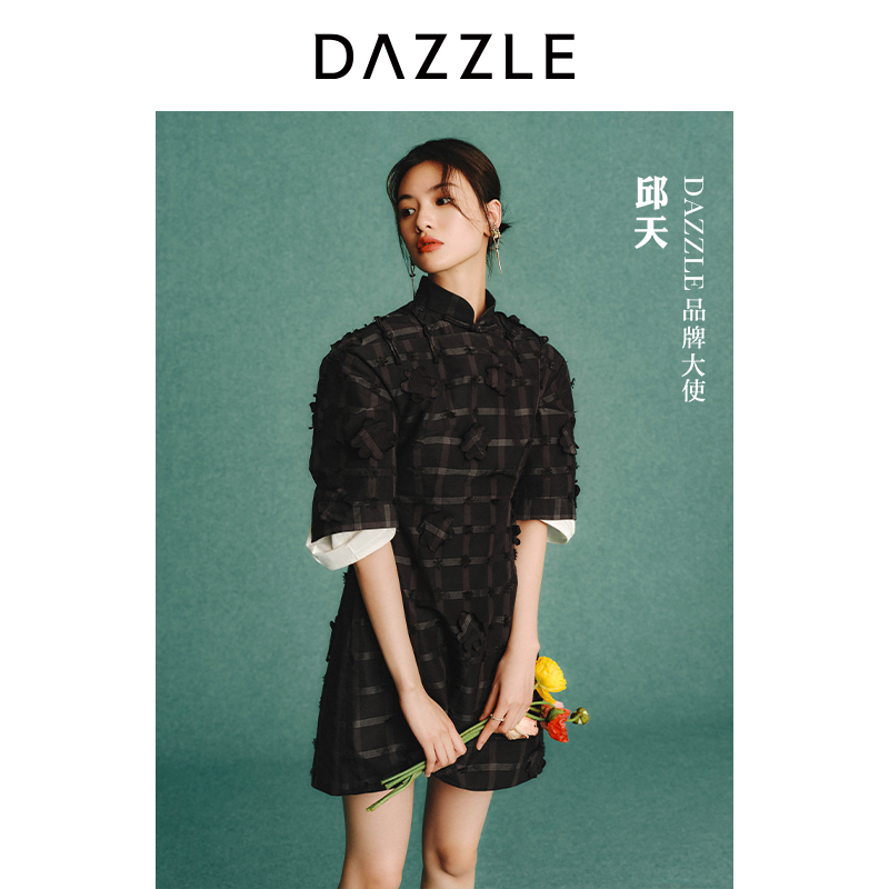 DAZZLE地素奥莱春夏装暗格中式魔方旗袍连衣裙女