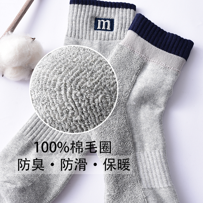 超值秋冬加厚毛圈保暖男袜子纯棉毛巾底运动减震羽毛球防臭中高筒