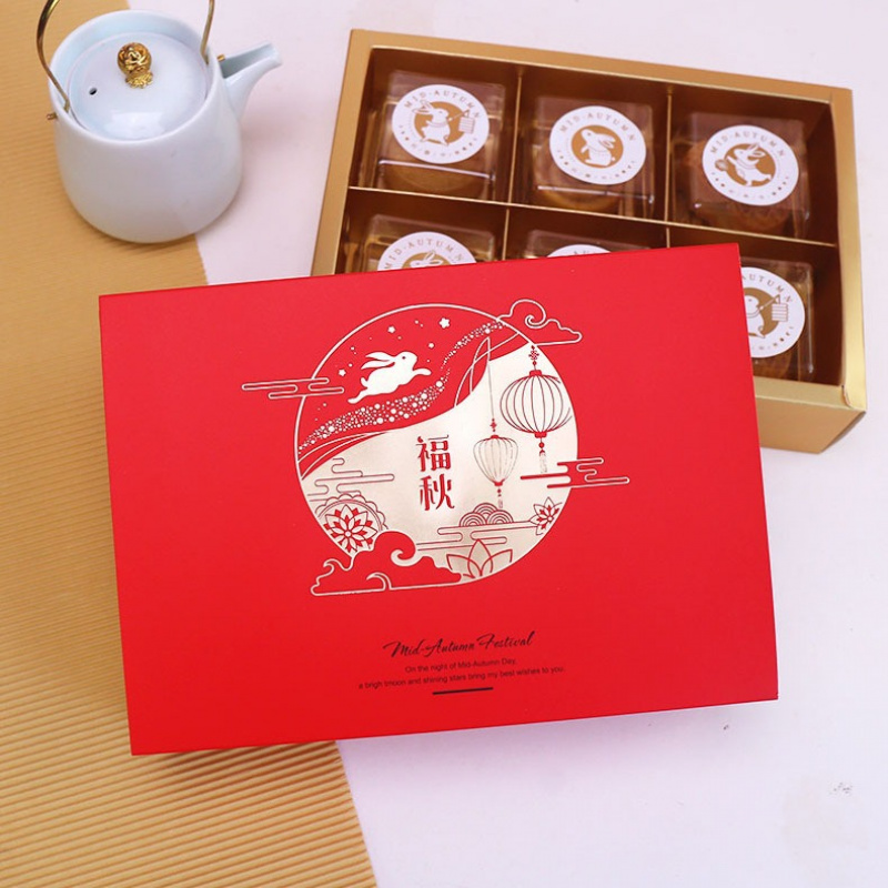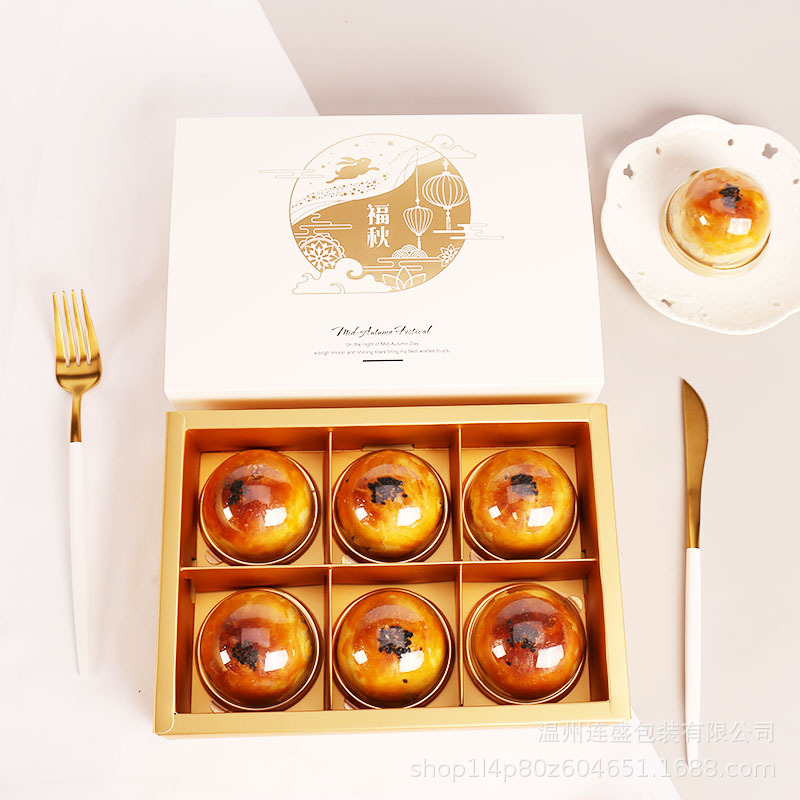现货新款高档中秋节蛋黄酥礼盒4粒/6粒月饼盒饼干糖果烘焙包装盒