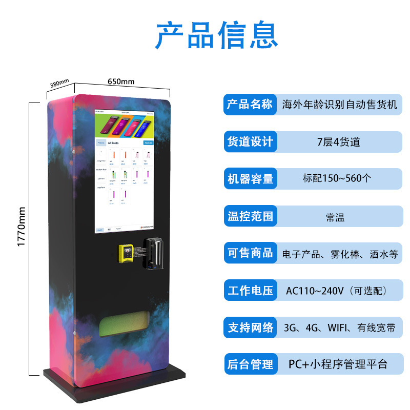 海外年龄识别雾化棒自动售货机刷卡投币自动售卖机智能无人售货机