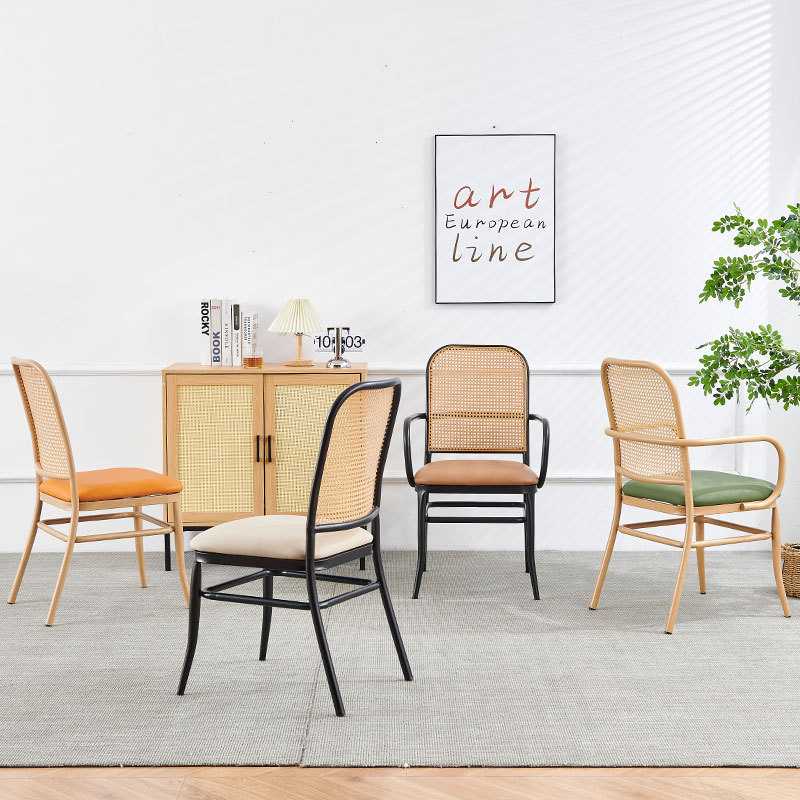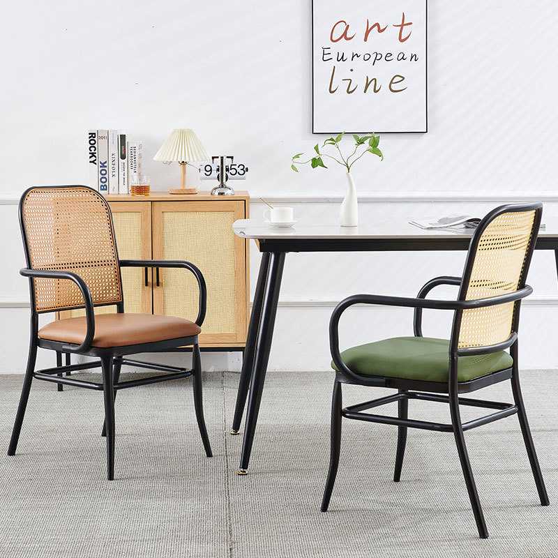 复古藤编椅家用带扶手靠背椅书房阳台休闲椅子 轻奢风餐椅跨境